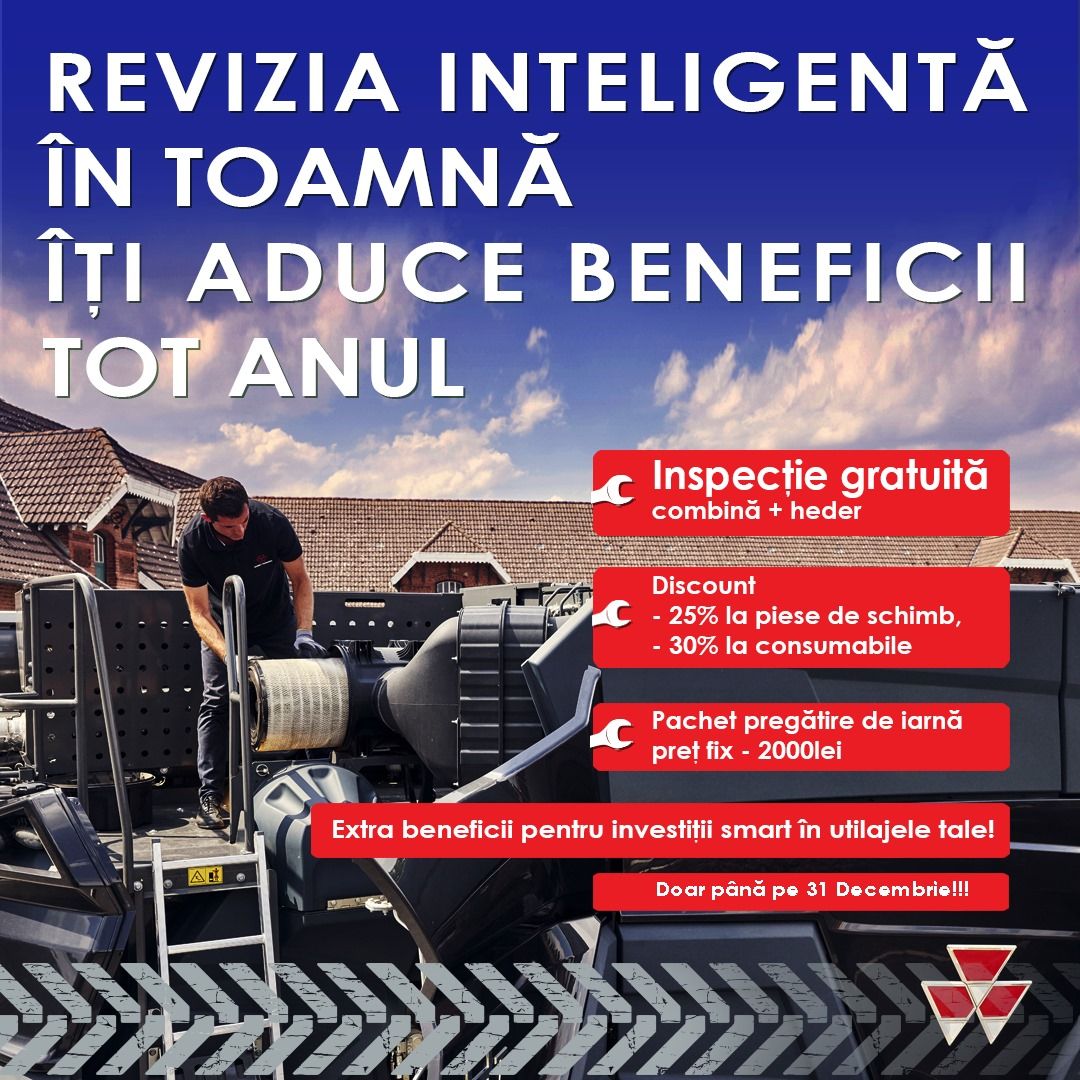 Includes: check belts, radiators, filters, fluids (AdBlue, antifreeze), cleaning of sieves, concaves and grates (depending on model).