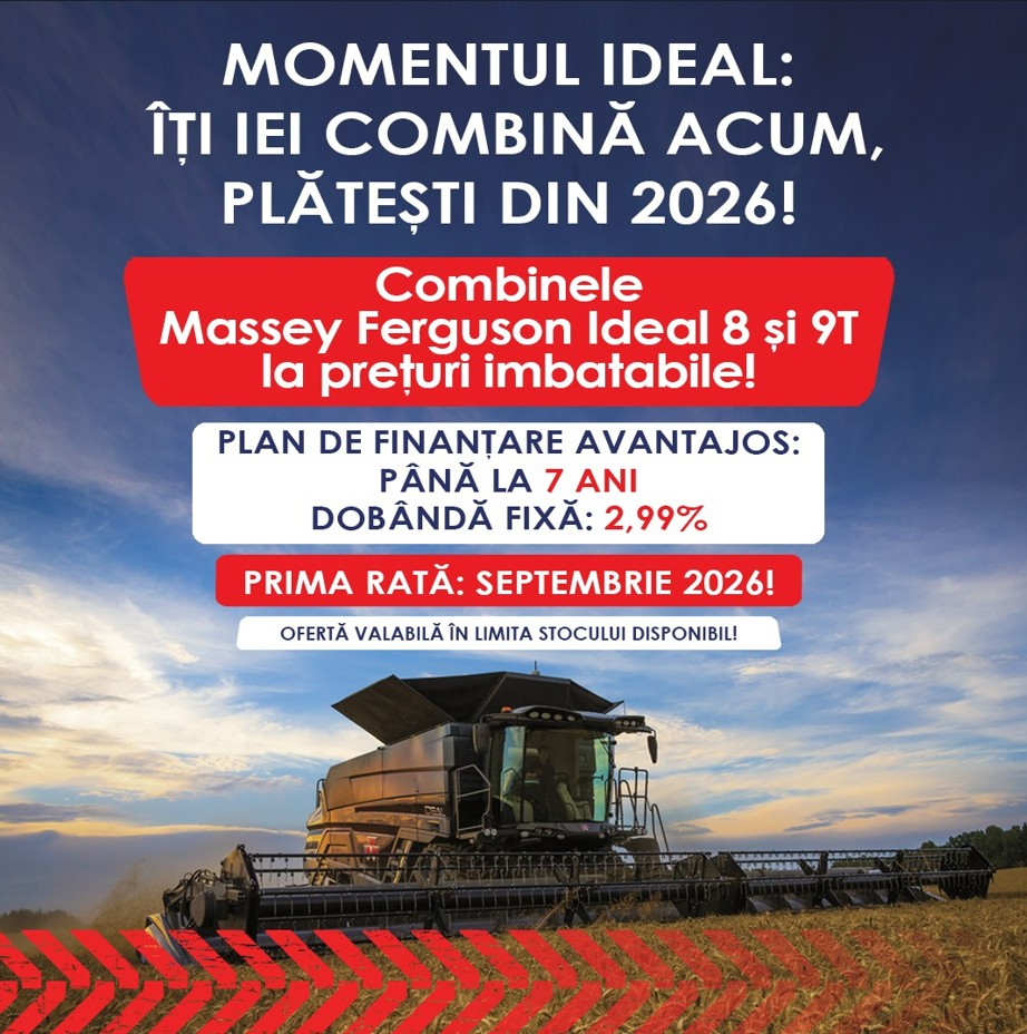 Alege combina Ideal de la Massey Ferguson, model 8 sau 9 T și profită de un PREȚ IMBATABIL + super finanțare!